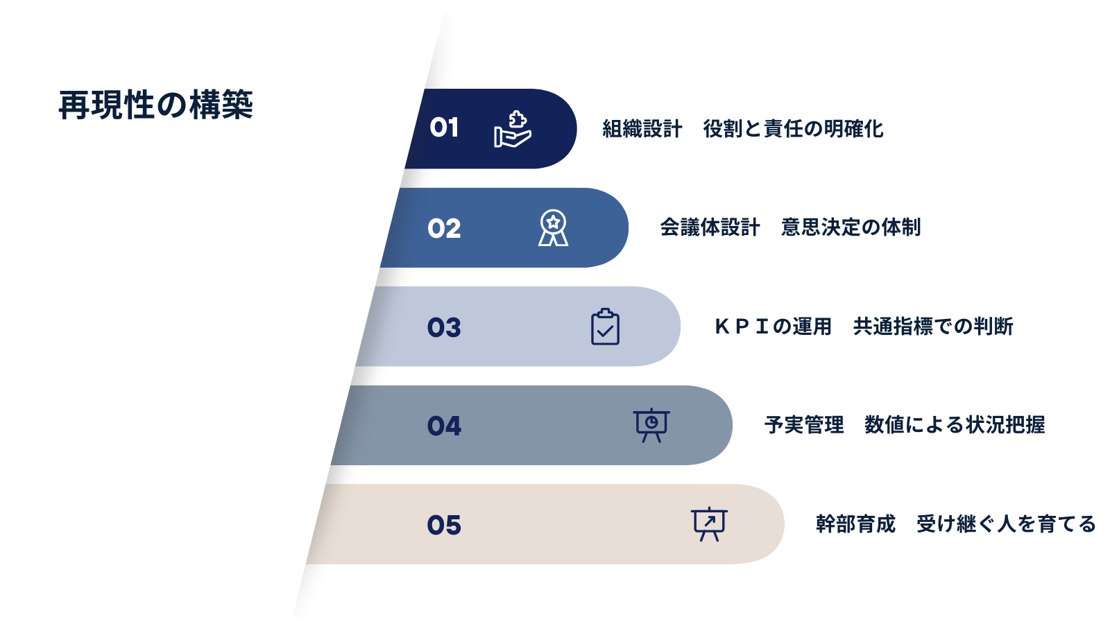 予実管理を回し、役割を定義し、幹部を育成することで、